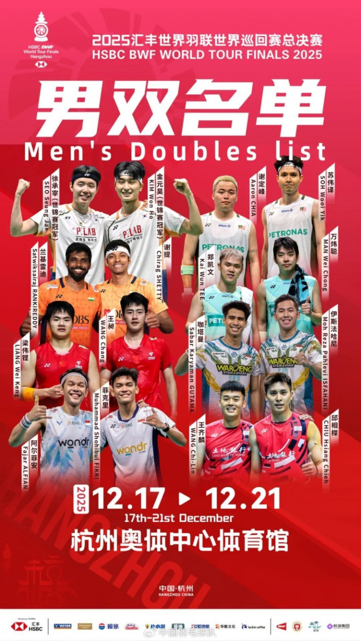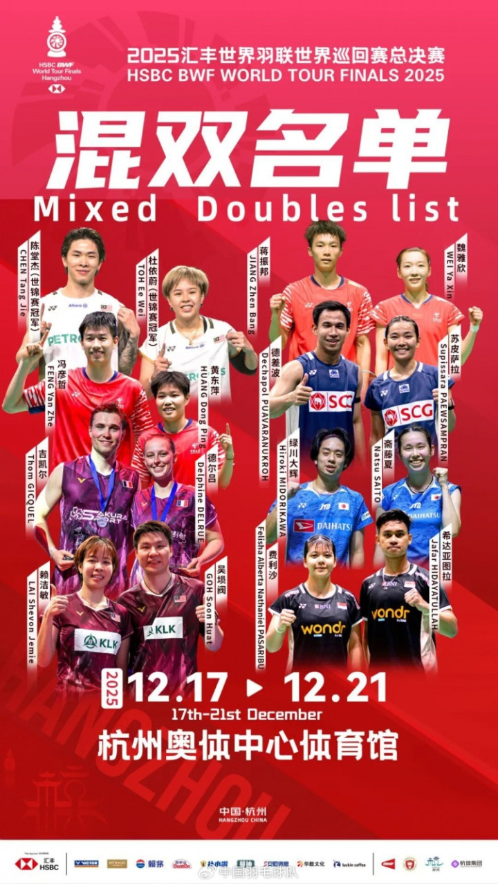总决赛五个单项的参赛名单于近日正式确定。得益于本赛季前期赛事的出色发挥,中国羽毛球队在男单、女单、女双、混双四个项目中实现满额参赛,男双则由梁伟铿/王昶独闯决赛圈,全队锁定9个参赛席位。